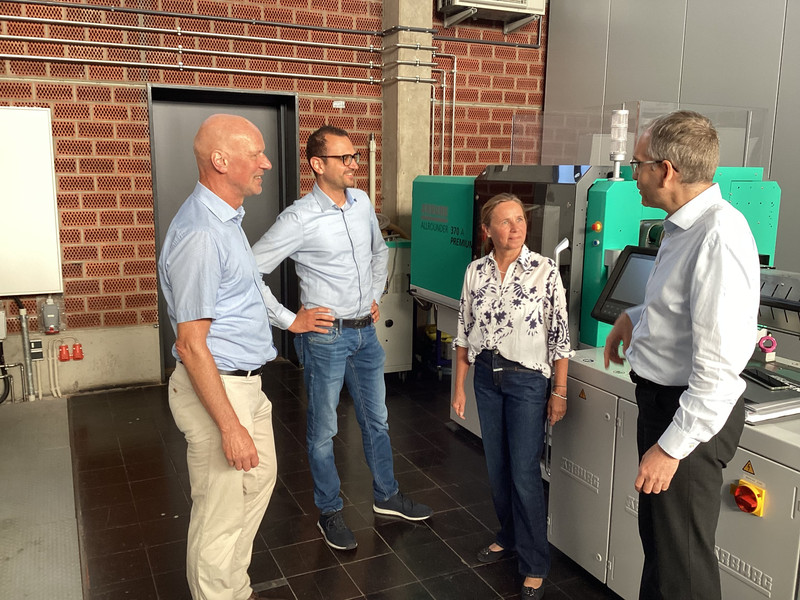 Es lag nahe, mit dem Polymer-Institut Kunststofftechnik (PIK) der Hochschule Heilbronn, Kontakt aufzunehmen und ein Gespräch mit den Experten für Kunststofftechnik, Prof. Dr.-Ing Uwe Gleiter und Prof. Dr.-Ing. Sebastian Schillo zu vereinbaren. Am PIK wird unter anderem zu Themen der additiven Fertigung und an der Entwicklung neuer Methoden zur dynamischen und schnellen zyklischen Temperierung von Spritzgießwerkzeugen geforscht. Durch die Zusammenarbeit von Forschung und Industrie lassen sich beispielsweise im Rahmen von gemeinsamen Projekten innovative Technologien in die Praxis überführen. Bei einem fachlichen Austausch wurden Möglichkeiten der Zusammenarbeit besprochen. Die räumliche Nähe und das Leistungsspektrum des PIK wurde dabei als klarer Vorteil erkannt. Eine abschließende Führung durch die Labore des Instituts zeigte den hohen Innovationsgrad des PIK.